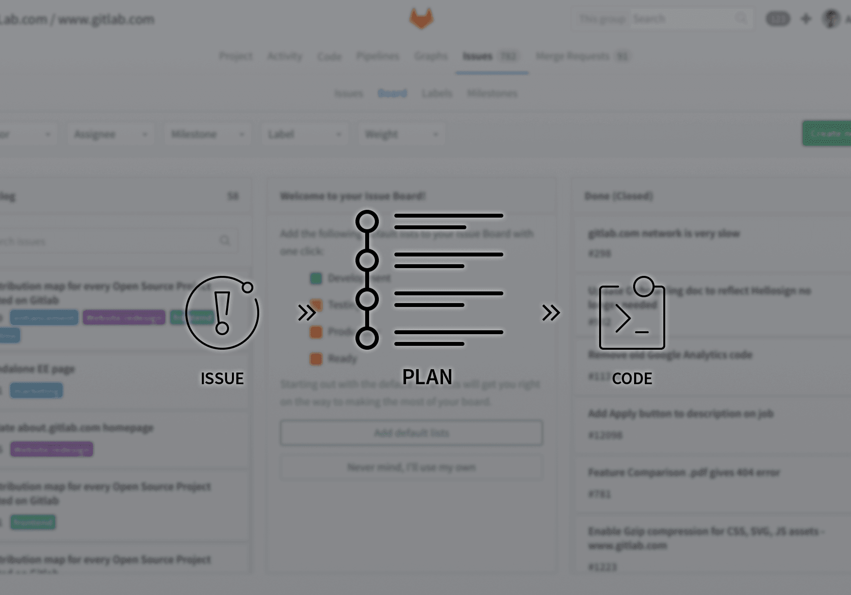 A GitLab Issues Board is a simplified approach to a complex problem. We built on top of GitLab's existing issue-tracking functionality and leverage the power of GitLab issue labels by utilizing them as lists on a Kanban board. You can construct different views of your issue board while maintaining the same filtering and sorting abilities you see across the issue tracker. You can create multiple boards to capture every layer of visibility you need, and define the scope of the board by milestone, labels, assignee, and weight.